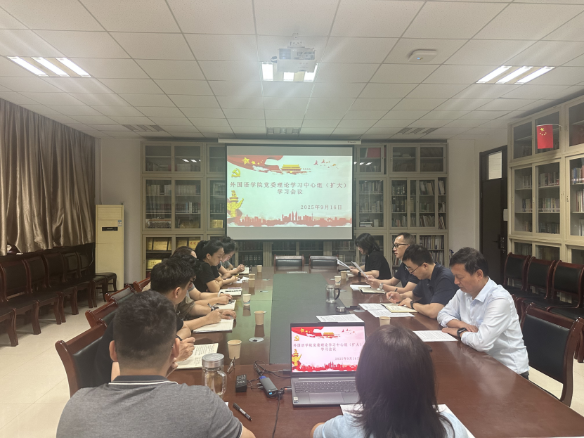 9月16日,外国语学院党委理论学习中心组(扩大)在学院资料室召开学习研讨会议。学院领导班子成员、党支部书记、科级干部参加,学院党委书记杨华主持会议。